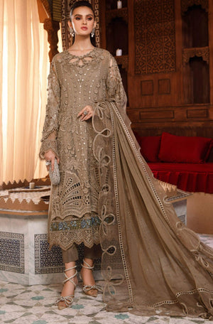 Maria B Brown Luxury Organza Dress Embroidered 3 Piece Unstitched