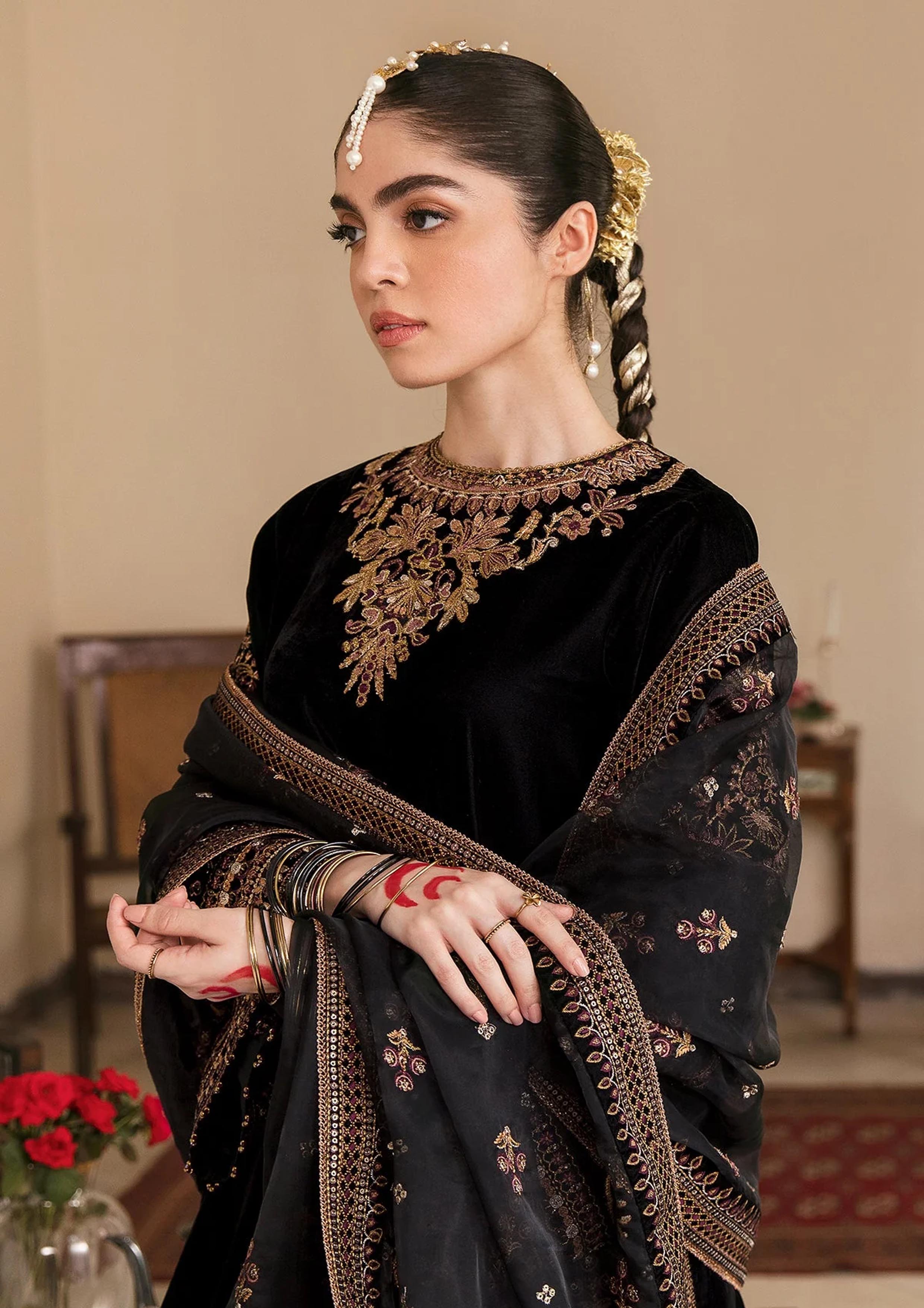 Baroque Black Luxury Velvet Dress Embroidered 3 Piece Unstitched