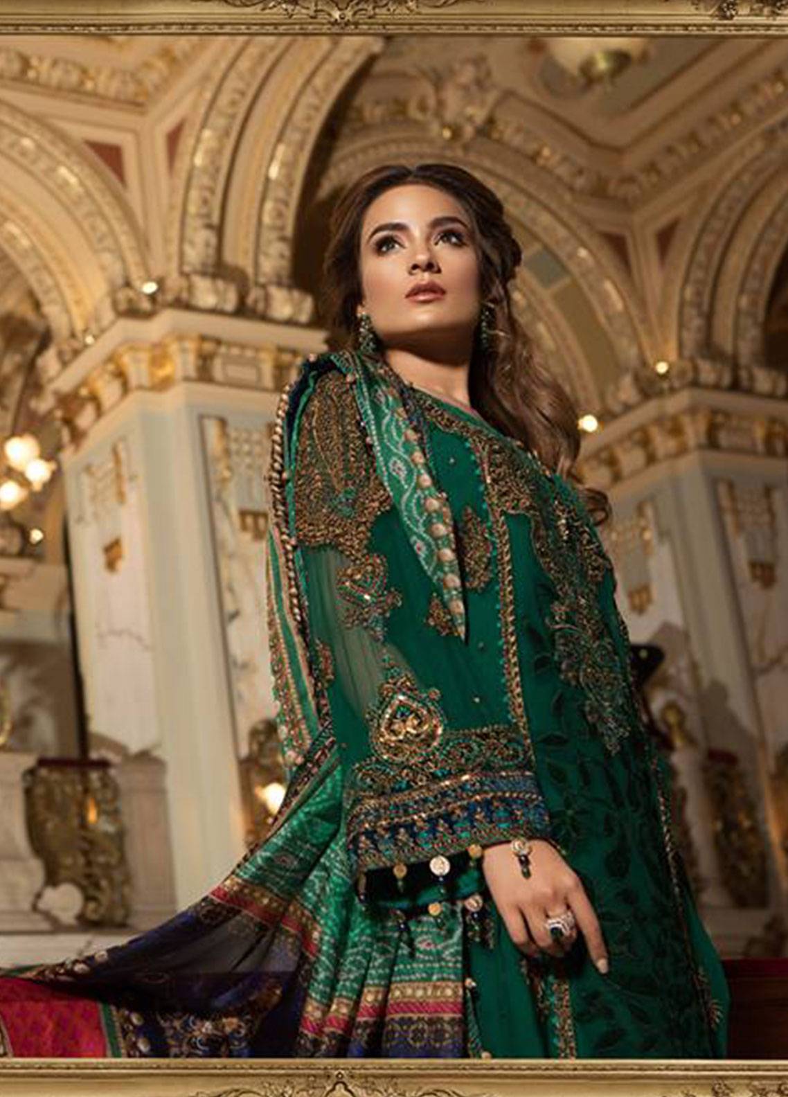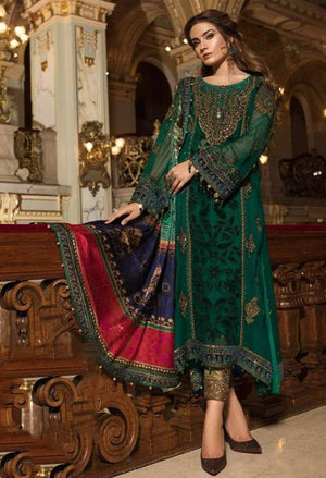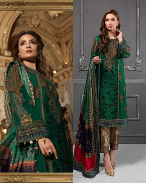 Maria B Green Embroidered Chiffon Luxury 3 Piece Unstitched