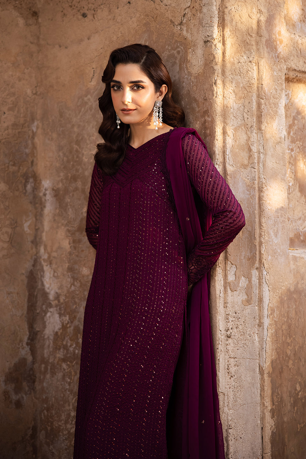 Azure Luxury Chiffon Dress GARNET MAJESTY Embroidered 3pcs Unstitched