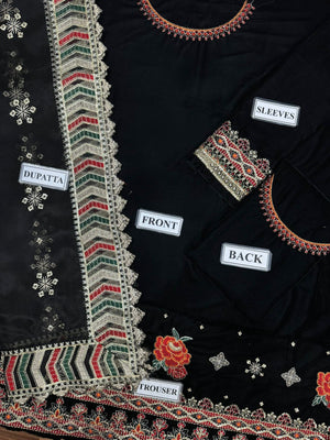 Baroque Black Luxury Velvet Dress Embroidered 3 Piece Unstitched