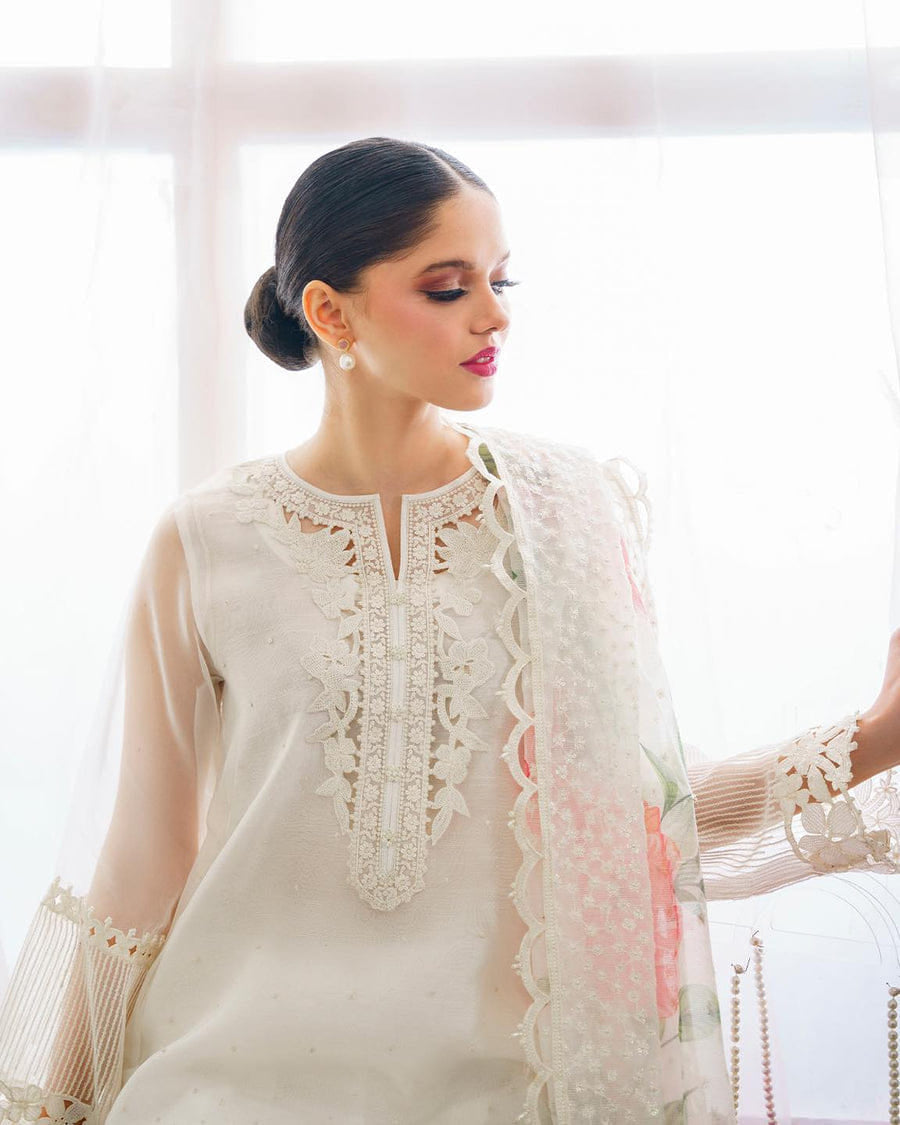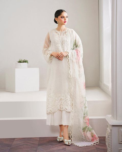 Baroque White Formal Collection Organza Dress Hand Work Embroidered 3 Piece Unstitched