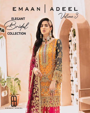 Emaan Adeel Elegant Bridal Collection Luxury Chiffon Dress 3 piece Unstitched