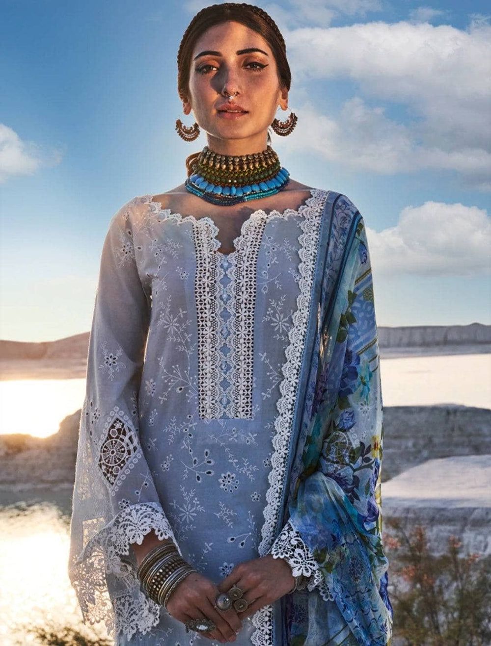 Embroidery Lawn Suit with digital printed silk dupatta