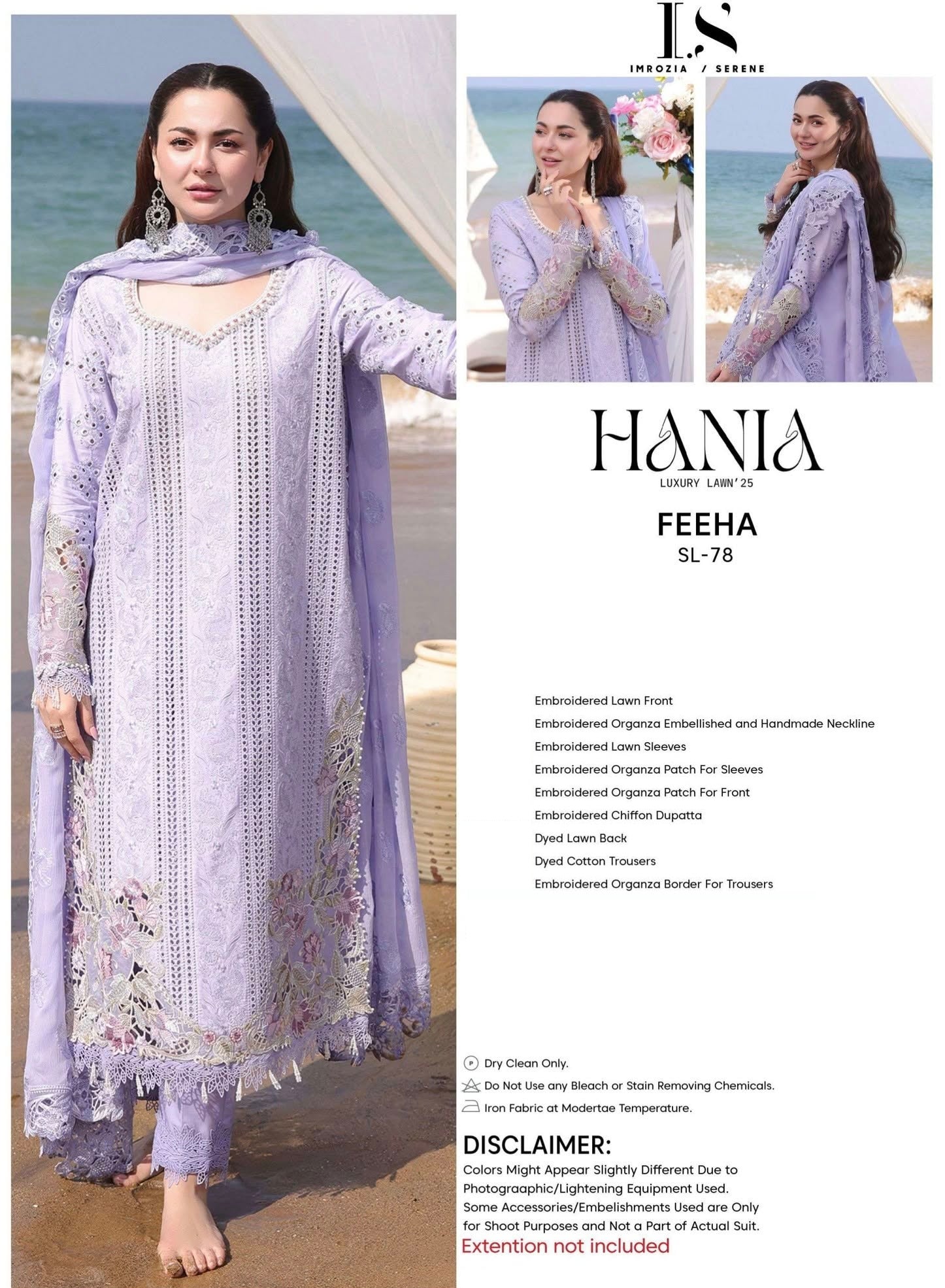 Introducing the Imrozia Luxury Embroidered Lawn Unstitched Collection SL 78 Feeha Serene. Elevate your style with this exclusive collection featuring intricate embroidery and lush lawn fabric. Experience the pinnacle of luxury and sophistication with Imrozia. Unleash your inner diva.