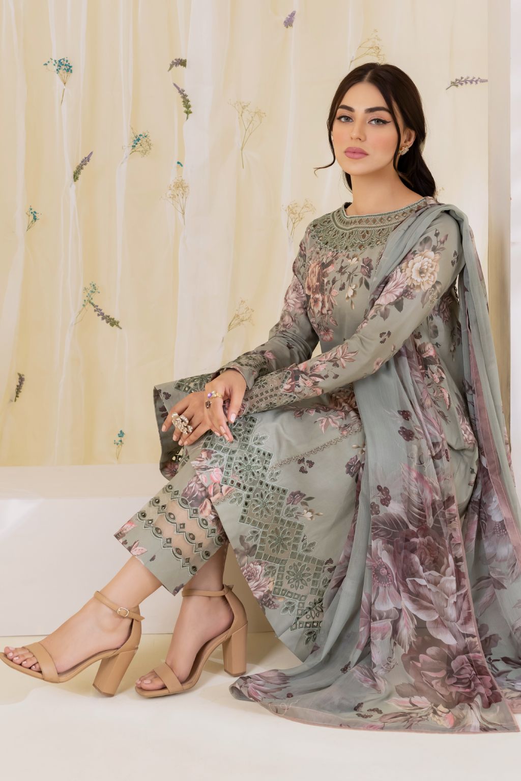 LAWN Suit with SILK Dupatta