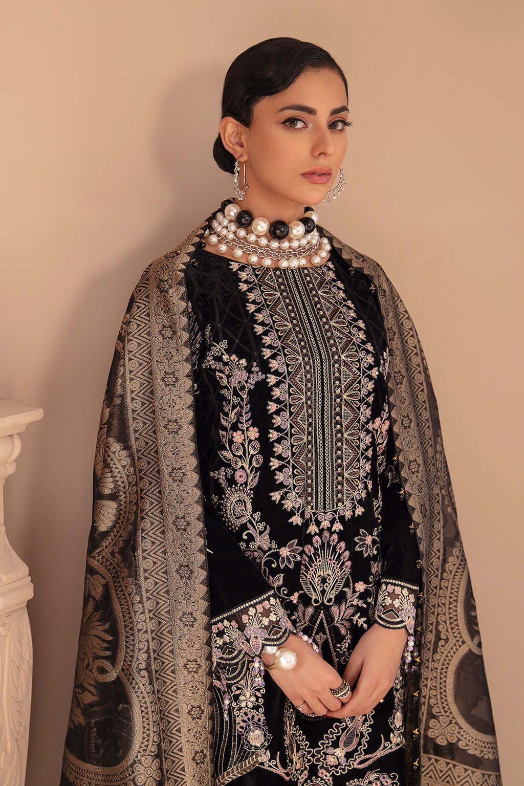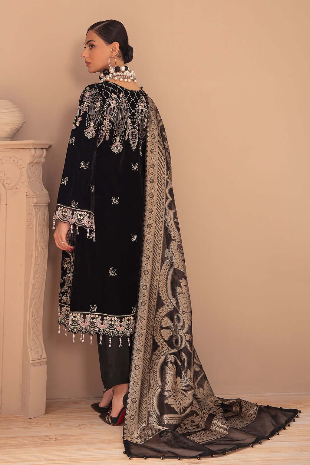 Ramsha Minhal Black Luxury Velvet Dress Embroidered 3 Piece Unstitched